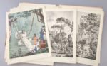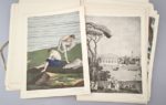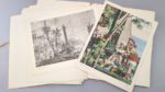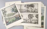 CLOUZOT (Henri): Tableaux-Tentures de Dufour & Leroy. Les chefs d'oeuvre du papier peint. Paris, Librairie des Arts décoratifs, Calavas, s.d. (1930). Un volume. 25 par 32,5 cm. (20) pages, suivi de 54 planches (complet), en couleurs et en noir. En feuilles, dans un portfolio cartonné vieux rose d'éditeur, dos en percaline écrue, étiquette de titre sur le 1er plat, lacets, petite étiquette manuscrite sur le dos. Petites rousseurs sur l'étiquette de titre, et sur les marges de 3 feuilles de texte. Sinon parfait état. Ex-Libris Marcel DUNAN. Un très bel et peu commun ouvrage sur les papiers peints scéniques, représentant une scène complète…