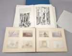 VERANE (LÉON): Toulon. Cuivres de DECARIS. Toulon, Montbarbon, 1948. 1 volume. 19 par 26,5 cm. (2)(133 pages. En feuilles, sous couverture illustrée rempliée. Avec chemise et étui. Parfait état de l'exemplaire. Avec 40 vignettes, lettrines & 10 hors textes au burin de Robert DECARIS. Tiré à 420 ex. numérotés sur vélin, celui-ci 1 des 365 (n°201). On joint: Un petit album de photos sur le port de TOULON, circa 1900. 52 photos en petit format, avec l'envoi de ballons, et des vues de bâtiments de guerre. Etat moyen.