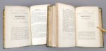 STENDHAL (Henri BEYLE dit): Le Rouge et le Noir, chronique du XIXe siècle, par M. DE STENDHAL. Paris, Levavasseur, 1831. Deux volumes. 12 par 20 cm. (4)-398; (4)-487 pages. Demi-veau vert empire à coins d'époque, dos lisse avec des motifs romantiques, pièces de titre et de tomaison noires. Dos uniformément insolé, sinon excellent état de la reliure, comme du texte (rares rousseurs claires dans le tome 2, vraiment discrètes). Édition originale rare, ornée sur chaque titre d'une vignette d'Henri Monnier gravée sur bois par Porret. Exemplaire quasiment exempt de toutes rousseurs, et dans une reliure contemporaine, ce qui est rare. Sans le feuillet d'avertissement signalé dans certains exemplaires. Une des éditions originales de la littérature française parmi les plus recherchées…