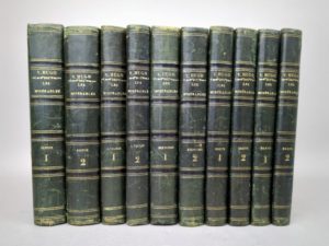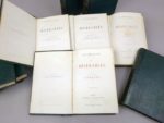 HUGO (Victor): Les Misérables. Paris, Pagnerre, 1862. 10 volumes. 14,5 par 21,5 cm. Demi-basane verte d'époque, dos lisse décoré. Menus frottements sans gravité, sinon bon état de la reliure. Très rares rousseurs éparses, quelques cahiers légèrement distendus, sans gravité. Édition originale parisienne, mise en vente trois jours après l'édition de Bruxelles. Les tomes 1, 2, 3, 4, 5 6 ont une mention d'édition fictive (2ème ou 3ème édition). Les tomes 7, 8, 9, 10 sont bien du 1er tirage. Une belle édition de ce célèbre roman. Les tomes comportent le titre des 5 parties de l'ouvrage sur le dos (Fantine, Cosette, Marius, Rue Plumet, Jean Valjean), ce qui rend cette reliure enviable.