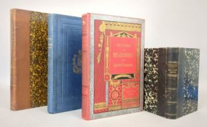 Réunion de 4 ouvrages sur l'aérostation - voyages en ballon: 1. FLAMMARION (Camille): Mes voyages aériens. Impressions et études. Journal de bord de douze voyages scientifiques en ballon avec plans topographiques. Troisième édition. Paris, C. Marpon et E. Flammarion, 1883. 10,5 par 17,5 cm. (4)-390 pages. Demi-chagrin noir de l'époque, dos à nerfs. Reliure légèrement frottée. Quelques illustrations in-texte, dont 1 carte. 3e édition (E.O. : 1881). 3. BÉTHUYS (G.): Les aérostiers militaires. Un volume contenant de nombreuses illustrations de Gil Baer. Paris, H. Lecène et H. Oudin, 1889. Un volume. 16 par 26 cm. 319 pages. Pleine toile bleue de l'époque, avec la plaque des Ecoles communales de la Ville de Lyon sur le 1er plat. Très bon état de l'exemplaire (traces de l'étiquette de Prix sur la page de garde). Illustrations in-texte, dont 11 planches (dont 1 carte). Edition originale. Brockett, Bibliography of aeronautics 1817. Les aérostiers de Coutelle - Pendant le siège de Paris - Les précurseurs de la navigation aérienne - L'école de Chalais et les aérostiers modernes. 4. TISSANDIER (Gaston): Histoire de mes ascensions. Récit de quarante-cinq voyages aériens (1868-1888). Neuvième édition. Ouvrage illustré de nombreux dessins par Albert Tissandier, Férat et Adrien Marie, de diagrammes dressés par l'auteur et de reproductions de photographies. Paris, Maurice Dreyfous, s.d. [1890]. Un volume. 16,5 par 25 cm. 1 portrait compris dans la pagination-XXIV-308 pages. Cartonnage rouge illustré de l'éditeur, tranches dorées. Rares rousseurs, sinon très bon état. Illustrations in-texte, dont 19 planches. "Edition entièrement refondue et augmentée de plusieurs chapitres." 6. TISSANDIER (Gaston): Souvenirs et récits d'un aérostier militaire de l'Armée de la Loire, 1870-1871. Avec une lettre autographe du général Chanzy et de nombreuses illustrations de V.A. Poirson. Deuxième édition. Paris, Maurice Dreyfous, 1896. Un volume. 19 par 27,8 cm. 1 frontispice compris dans la pagination-X-356 pages + 1 fac-similé h.t. + 16 planches h.t. Demi-basane de l'époque, dos lisse, à coins, plats de la couverture conservées (rousseurs sur ceux-ci). Deux pages avec une mouillure claire, sinon bon état. 2e édition (E.O. : 1891). Un bel ensemble.