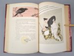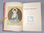 FOUJITA (Léonard-Tsuguharu): Légendes japonaises recueillies et illustrées par T. FOUJITA. Préface de Claude FARRERE. L'Eau - la Terre - Le Ciel - Le Feu. Collection des plus belles légendes du monde. Paris, L'Abeille d'Or, 1922. Un volume. 17,7 par 25,7 cm. Frontispice et 89 pages, et 16 hors-textes en couleurs (17 avec le Bouddha frontispice). Complet. Demi-veau groseille d'époque à coins, dos 5 nerfs, tête dorée, couvertures et dos conservés. Petits frottements mineurs sur la reliure, sinon très bon état. Excellent état intérieur. Nombreuses illustrations en bandeaux et dans le texte, toujours en couleurs. Les couvertures étant illustrées, il est précieux qu'elles aient été conservées. Edition originale numéroté sur vélin Alfa (N°217). FOUJITA a choisi lui-même les légendes, et il a retenu celles qu'il savait qu'il saurait illustrer. Un très bel ouvrage.