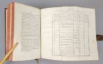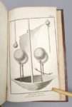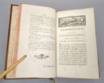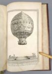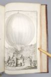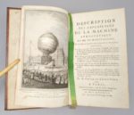 FAUJAS de SAINT-FOND (Barthélémy): Description des expériences de la machine aérostatique de MM. de Montgolfier, Et de celles auxquelles cette découverte a donné lieu […]. Paris, Cuchet, 1783. Un volume. 11,5 par 19 cm. Frontispice-XL-299-(3) pages et d'un tableau dépliant et de 8 gravures (de 1 à 9, sauf la 5, placée en frontispice, comme souvent). Complet. Pleine basane marbrée d'époque, dos 5 nerfs, caissons ornés, pièce de titre ocre. Petites épidermures, sinon très bon état de la reliure. Quelques rousseurs, mouillure claire en marge basse sur les premiers et derniers feuillets. Une page poussiéreuse en fin de volume. Édition originale du premier ouvrage exposant la première expérience aéronautique… Un second volume, faisant suite à celui-ci et relatant l'expérience qui s'est tenue au Château de la Muette, paraîtra en 1784.