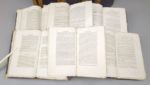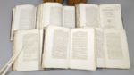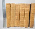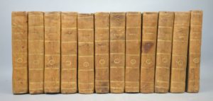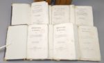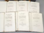 La MINERVE FRANÇAISE. Paris, Bureau de la Minerve Française, février 1818-février 1820, 9 volumes (suivi de). MERCURE DE FRANCE. [Tomes 3 à 5]. Paris, Administration du Mercure, 1817-1818, 3 volumes. Soit 2 ouvrages en 12 volumes 13 par 21,5 cm. Demi-basane fauve de l'époque, dos lisse, ex. non rognés. Petits défauts mineurs sur les reliure, quelques rousseurs éparses. Timbres royaux sur de nombreux ff. des volumes 9 à 12. 1) Tout ce qui a paru de ce célèbre périodique. Cat. périodique B.N. III-p. 536 ; Yvert, Politique libérale, biblio. sélective 23 ; Hatin, Biblio. de la presse p. 342. "Minerve française (La), recueil périodique français publié de février 1818 à [février] 1820. Il fut fondé par les publicistes du parti libéral pour remplacer le Mercure de France, dépouillé de son privilège. Il paraissait par livraisons hebdomadaires et traitait plus de politique que de littérature, et professait, dans l'une et dans l'autre, les mêmes principes d'indépendance. La Minerve avait pour principaux rédacteurs Benjamin Constant, Jay, Etienne, Jouy, Tissot, Lacretelle, etc.. La pièce capitale, [en dehors des articles de Benjamin Constant], était les Lettres d'Etienne, qui se plaisait à chercher les nouvelles de Paris dans les journaux de l'étranger et à transcrire de l'anglais des choses qu'on n'aurait pas osé insérer d'abord dans une gazette française. La vivacité avec laquelle la Minerve soutint la lutte contre le pouvoir l'a fait appeler "la satire Ménippée de la Restauration". La politique "reste surtout, du moins jusqu'à son élection comme député de la Sarthe le 26 mars 1819, l'oeuvre de Constant qui y publie en tout 99 articles. Y figurent certains de ses meilleurs textes, notamment les "Lettres sur les Cent-Jours", publiées pour la première fois (cf. numéro 56), et son analyse des "Considérations" de Madame de Staël (cf. numéro suivant). 2) Trois derniers volumes (sur 5 parus) du Mercure de France. Ces trois volumes couvrent la période du 5 juillet 1817 à janvier 1818. A la fin du dernier volume, on a relié une partie des numéros du tome II (31 mai 1817 à juin 1817). Le volume V est rarissime. Le premier volume parut en janvier 1817. "Premier grand périodique libéral depuis les Cent-Jours." Il avait pour principal rédacteur Benjamin Constant. A la suite du tome 9 de la Minerve, on a relié le 11e volume des Lettres normandes, envoyé aux abonnés de la Minerve française pour compléter leur abonnement (cf. Hatin p. 336).