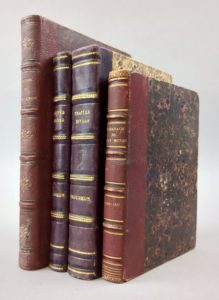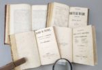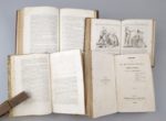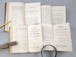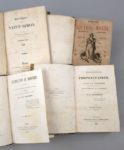 Réunion de 10 ouvrages de socialistes français dont 7 de Proudhon, en 4 volumes reliés! 1. PROUDHON (Pierre-Joseph): 1) Avertissement aux propriétaires, ou lettre à M. Considérant, sur une défense de la propriété. Deuxième édition. Paris, Garnier Frères, 1848, 100 pp. ; (suivi de). -2) Proposition relative à l'impôt sur le revenu, présentée le 11 juillet 1848, suivie du discours qu'il a prononcé à l'Assemblée Nationale le 31 juillet 1848. (Conforme au Moniteur Universel). Paris, Garnier Frères, 1848, 66 pp. ; (suivi de). - 3) Organisation du crédit et de la circulation, et solution du problème social, sans impôt, sans emprunt, sans numéraire, sans papier-monnaie, sans maximum, sans réquisitions, sans banqueroute, sans loi agraire, sans taxe des pauvres, sans ateliers nationaux, sans association, sans participation, sans intervention de l'État, sans entrave à la liberté du commerce et de l'industrie, sans atteinte à la propriété. Paris, Garnier Frères, 1848, (4)-43 pp. ; (suivi de). -4) Résumé de la question sociale ; banque d'échange. Paris, Garnier Frères, 1849, (4)-XIX-(1)-116 pp. + 2 ff. n.ch. (Extrait du cat. Baillière) ; soit 4 ouvrages en 1 vol. 11 par 17 cm. Demi-chagrin écrasé de l'époque sang de boeuf, dos à nerfs orné. Bon état de la reliure. Rousseurs éparses, une petite tache d'encre dans la marge ext. de 2 ff. (4e ouvrage). 1) 2e édition (E.O. : 1841). Goldsmiths 36107 ; Kress C. 7543 ; Einaudi 4548. 2) Edition originale. Haubtmann p. 1067 ; Goldsmiths 35757 ; Kress C. 7549 ; manque à Einaudi. La Proposition du 11 juillet 1848 occupe les pp. 3 à 7, le Discours du 31 juillet 1848, les pp. 8 à 66. 3) 2e édition, parue la même année que l'originale. Goldsmiths 35756 ; Kress C. 7548 ; manque à Einaudi. 4) 2e édition (E.O. : 1848). Goldsmiths 36697 ; manque à Einaudi. 2. Doctrine de Saint-Simon. Première année. Exposition. 1829. Paris, Au Bureau de l'Organisateur, 1830. Un volume. 12,5 par 20,5 cm. (8)-XL-327 pages. Demi-chagrin cerise de l'époque, dos à nerfs orné. Dos passé, coins légèrement émoussés. Petite mouillure d'angle sur la moitié des pages, rousseurs éparses. Edition originale. Fournel pp. 68-72 ; Walch 551 ; Gerits-Walch 141 ; Einaudi 1593. "L'exposition de la doctrine ne fut, en aucune façon, comme on pourrait le supposer, un simple résumé des travaux antérieurs de l'École et de l'oeuvre de Saint-Simon. De toutes pièces, elle constitue une oeuvre originale." (Charléty, Hist. du Saint-Simonisme p. 49). Elle a été faite principalement par Carnot, Fournel et Duveyrier, et relue par Enfantin. 3. PROUDHON (Pierre-Joseph): 1) De la célébration du dimanche considérée sous les rapports de l'hygiène publique, de la morale, des relations de famille et de cité. Paris, Garnier Frères, 1850, 84 pp. ; (suivi de). -2) Rapport du citoyen Thiers, précédé de la proposition du citoyen Proudhon, relative à l'impôt sur le revenu, et suivi de son discours prononcé à l'Assemblée nationale le 31 juillet 1848. (Conforme au Moniteur universel). Paris, Garnier Frères, 1849, 87 pp. ; (suivi de). -3) Banque du peuple, suivie du rapport de la commission des délégués du Luxembourg. Paris, Garnier Frères, 1849, 52 pp. ; soit 3 ouvrages en 1 volume. 11 par 17 cm. Demi-chagrin cerise de l'époque, dos à nerfs orné. Bon état de l'exemplaire. Rousseurs éparses. 1) L'édition originale est de 1839. 2) Pp. [3] à 7 : Proposition relative à l'impôt sur le revenu ; pp. [9] à 28 : Rapport de Thiers ; pp. [29] à 87 : Discours de Proudhon du 31 juillet 1848. 3) Edition originale. Rare. Haubtman, P.-J. Proudhon p. 1067 ; Goldsmiths 36692. 4. Almanach du nouveau monde. 1850 [et 1851]. Paris, Au Bureau du Nouveau Monde, s.d. [1850-1851], 2 années en 1 volume. 11 par 15 cm. 176; 160 pages. Demi-chagrin sang de boeuf de l'époque, dos à nerfs. Rousseurs et très légères mouillures marginales (année 1851). 4 pages de musique et illustrations in-texte. Tout ce qui a paru de cet almanach. Carteret 2554. "Almanach composé d'articles des députés proscrits, Louis Blanc, Etienne Arago, Rattier, Martin Bernard, Barthélémy. Avec Le travail, musique de Victor Lefebvre, poésie d'Etienne Arago. Devait contenir des articles de Barbès et d'Albert qui ne purent arriver à cause de la difficulté des communications avec les prisonniers de Doullens. Le titre de l'année 1851 porte en plus : "Par Louis Blanc".