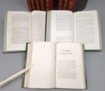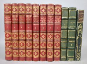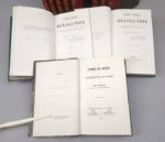 Réunion de 3 ouvrages sur la révolution de 1848: 1. SAUZET (Paul): La Chambre des Députés et la Révolution de Février. Paris et Lyon, Perisse Frères, 1851. Un volume. 13 par 20,5 cm. XVIII-(2)-463 pages. Demi-veau de l'époque, dos décoré de fers romantiques. Petite épidermure sur le second plat, sans gravité. Edition originale. Crémieux p. 30. Important témoignage de cet avocat, né à Lyon en 1800, président de la Chambre des Députés de 1839 à 1848. Il fit preuve dans l'exercice de ses fonctions d'un entier dévouement au gouvernement. 2. NORMANBY (Lord Constantine Henry, Marquis of): Une année de révolution d'après un journal tenu à Paris en 1848. Paris, Henri Plon, 1858. 2 volumes. 13 par 21 cm. (4)-416; (4)-486 pages + 1 f. d'errata. Demi-chagrin vert de l'époque, dos 4 nerfs à caissons ornés. Rousseurs éparses sur quelques cahiers. 2 coins émoussés. Bon exemplaire. Edition originale en français. (E.O. en anglais : 1857). Ambassadeur d'Angleterre à Paris de 1846 à 1852, Normanby suivit quotidiennement les événements de la Révolution de 1848. Il en retraça tous les traits dans ces mémoires, qui eurent un fort retentissement en Angleterre. Il fut par contre très critiqué en France. 3. GARNIER-PAGÈS (Louis-Antoine): Histoire de la révolution de 1848. Paris, Pagnerre, 1861-1862. 8 volumes. 14 par 22 cm. Demi-chagrin rouge de l'époque, dos 5 nerfs ornés. Rousseurs éparses, sinon très bel exemplaire. Portrait de l'auteur au tome 1. Edition originale. Tomes 1 à 3 : Europe ; tome 4 : Chute de la royauté ; tome 5 : 24 février 1848 ; tomes 6 à 8 : Gouvernement provisoire.