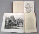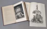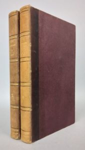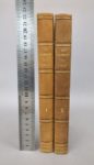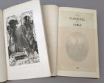 Collectif: Les classiques de la table. Petite blibliothèque des écrits les plus distingués publiés à Paris sur la gastronomie et la vie élégante, ornés de portraits, vignettes sur acier, eaux-fortes, lithographies, d'après MM. Paul Delaroche, Ary Scheffer, Akfred et Tony Johannot, Isabey, Gavarni, Eugène Lamy, Roqueplan, Chenavard, Denière, par MM. Henriquel Dupont, Blanchard fils, Colignon, Tony Johannot, Roqueplan, Desmadryl, etc., etc. 3ème édition, augmentée. Paris, Au Dépôt de la Librairie, 1845. Deux parties en deux volumes. 13 par 22 cm. (6)-frontispice-IV-(2)-XXIV-146-XXV à XXXIV- 147 à 246- XXXV à XXXVI-247 à 288-XXXVII à XLIV; (6)-289 à 388-XLVII à L-389 à 641 pages. (collation sportive). 19 gravures hors-texte dans le tome 1 dont le frontispice, titre gravé et 13 gravures hors-texte dans le tome 2, dont plusieurs dépliantes. Complet. Demi-basane brune de l'époque, dos lisse. Dos et plats insolés, quelques frottements. Très bon état intérieur. Une reprise des grands classiques de la table (Brillat-Savarin, Grimod de la Reynière, etc.) agréablement illustrée.