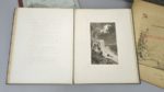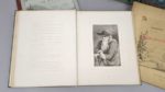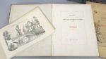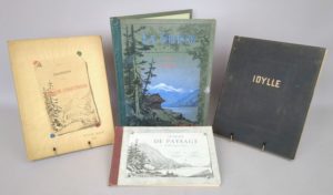 Trois manuscrits de Hector GUIOT La Suisse & l'Italie. Hector Guiot, officier de l'instruction publique. Daté de 1874. Un volume. 26,5 par 35 cm. 10 cartons avec des dessins contrecollés (parfois plusieurs par carton). Sous chemise avec une très belle illustration en couleurs sur le 1er plat, dos en percaline verte. Chemise en bon état, Très rares rousseurs sur les cartons. Avec Une excursion à la Grande Chartreuse, par Hector Guiot, 1892. Un volume. 23,5 par 31,5 cm. 3 cartons illustrés recto-verso par des dessins prenant la forme d'un article de journal, montés sur onglets. Très belle couverture illustrée pour ce plein papier recouvert d'une couverture rempliée. Petit défaut à un angle, sinon très bel état pour ce récit d'excursion très original. Avec Comment les petits ruisseaux font les grandes rivières. Idylle. Hector Guiot, 1878. Un volume. 23 par 30,5 cm. 21 cartons avec texte et illustrations recto-verso, montés sur onglets. Pleine toile noire d'époque, titré sur le 1er plat. Les dessins sont contrecollés. Petits défauts mineurs sur un manuscrit en très belle condition. On joint: GUIOT (Hector) et PILLET (J.): Le dessin de paysage étudié d'après nature. Paris, Nony, 1889. Un volume. 27 par 17 cm. 47 pages. Demi-toile d'éditeur, couverture cartonnée illustrée. Déboité.