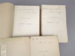 HUGO (Victor): Actes et Paroles (trois volumes) - Avant l'Exil (1841-1851), Pendant l'exil (1852-1870), Depuis l'exil (1870-1876). Paris, Michel Lévy, 1875-1876. Trois volumes. 15 par 23,5 cm. (4)-XLVIII-546; (4)-XLVIII-472;(4)-XLIV-355 pages. Brochés, sous couvertures imprimées. Tome 1: manque de papier à un angle du second plat. Quelques rousseurs claires éparses. Tome 2: dos cassé, très petit manque de papier sur le second plat. Non coupé. Quelques rousseurs claires éparses. Tome 3: petit manque de papier en haut du dos. Edition originale complète sur papier courant de cette grande oeuvre politique de Victor HUGO, ici telle que parue. Chaque volume a un envoi autographe signé par Victor HUGO, adressé à M. Louis ASSELINE. Celui-ci, homme de lettres et républicain radical, défenseur de la Libre Pensée, fut le condisciple de François HUGO, fils de Victor, au lycée Charlemagne.