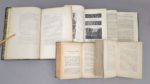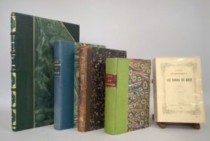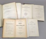 Réunion de 5 ouvrages sur l'Allemagne: 1. MULSANT (Etienne): Souvenirs d'un voyage en Allemagne. Paris, Magnin, Blanchard et Cie, 1862. Un volume. 18 par 28 cm. 144 pages. Demi-chagrin moderne vert foncé à coins, dos 5 nerfs orné, plats de la couverture conservés. Petits défauts sur les couvertures conservées, rares rousseurs, sinon très bel exemplaire. Edition originale. Par le président de la Société linnéenne de Lyon. 2. LASIAUVE (Eugène de): Études sur le Schleswig-Holstein avant et après le 24 mars 1848. Seconde édition. Paris, Garnier Frères, 1849. Un volume. 13 par 20,5 cm. (4)-XV-(1)-432 pages. Demi-basane brune de l'époque, dos orné. Reliure frottée, quelques rousseurs dans le texte. Par le médecin du prince d'Augustenbourg. 3. CHENEVIER (A.): Voyage en Belgique et sur les bords du Rhin. Valence, Chenevier et Chavet, 1863. Un volume. 11,5 par 18 cm. (4)-428-(1) pages. Broché, sous couverture imprimée, non coupé. Très bel état. Edition originale. Rare. Impressions de voyage du célèbre imprimeur valentinois. Table des matières -extrait- : Bruxelles. Liège. Aix-la-Chapelle. Cologne. Le Rhin. Coblentz. Mayence. Mayence : l'imprimerie. Francfort-sur-le-Main. Heidelberg. Baden-Baden. Strasbourg. 4. HURET (Jules): En Allemagne. Rhin et Westphalie. Dix-septième mille. Paris, Bibliothèque-Charpentier, 1908. Un volume. 11,5 par 17,5 cm. (4)-530-(1) pages. Demi-percaline tilleul bradel de l'époque, pièce de titre en basane sur le dos. Très bon état. Apologie de l'Allemagne par un journaliste du Figaro. "Prospérité - Les villes - Les ports usiniers et philanthropes - Les grands syndicats patronaux - Ouvriers et artistes - La discipline - Les moeurs - Les étudiants - L'Empereur, etc. etc." 5. Congrès archéologique de France. LXXXVe session tenue en Rhénanie en 1922 par la Société Française d'archéologie. Paris, A. Picard et Sté Générale d'Imprimerie et d'Édition, 1924. Un volume. 13,5 par 22 cm. 8 de 575-(1) pages + 22 planches h.t. Demi-toile verte de l'époque, couverture conservée. Illustrations in-texte.