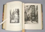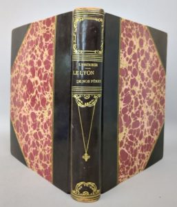 VINGTRINIER (Emmanuel): Le Lyon de nos pères. Illustré de 20 eaux-fortes et 300 dessins à la plume et au crayon par Joannès DREVET. Lyon, Bernoux, Cumin et Masson, 1901. Un volume 24,5 par 31,5 cm. VIII-334-(2) pages + 20 eaux-fortes hors-texte + 1 planche h.t. sur double page. Demi-chagrin brun à coins d'époque, dos lisse très joliment décoré, couvertures conservées, tête dorée. Quelques frottements discrets sur la coupe du plat supérieur, sinon très bel état de la reliure, et excellent état intérieur. Le plus recherché des ouvrages de DREVET. Il est illustré de 20 eaux-fortes et de 300 dessins à la plume et au crayon. Grand ouvrage classique permettant de visiter le LYON de l'Ancien Régime… Edition originale. Ici un des exemplaires numérotés sur vélin blanc (N°392), dans une belle reliure.