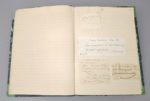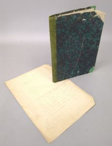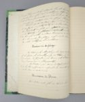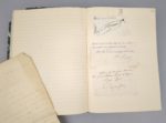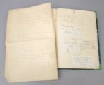 [autographes][Marine] Un recueil d'autographes d'Officiers de marine du Second Empire. 17,5 par 24,5 cm. Un cahier avec dos toilé, du 19ème siècle. Un coin manquant, mauvais état. Il contient, classés par ordre alphabétique, 50 autographes manuscrits. Ce sont souvent des parties de courriers. Les dates présentes vont de 1847 à 1872. Les signatures vont de deux ministres de la Marine, dont Martin FOURICHON, ministre sous le Gouvernement de défense nationale (1870-1871) à des majors-généraux… On joint un courrier daté du 6 décembre 1845