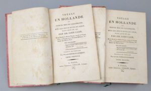 CARR (John): Voyage en Hollande et dans le midi de l'Allemagne, sur les deux rives du Rhin, dans l'été de 1806. Paris, Léopold Collin, 1809. 2 volumes. 12 par 20 cm. (10)-LXVIII-331; (4)-458 pages. Demi-basane brune d'époque, dos lisses ornés, pièce de titre et de tomaison rouges. Petits défauts sur un mors et sur les coiffes, petits frottements. Une petite tache marginale sur 3 feuillets du tome 1, quelques rousseurs en fin du tome 2. Malgré cela, un exemplaire enviable. Première édition française, traduite de l'anglais par la romancière Louise-Félicité Guinement de Keralio Robert. Sir John Carr (1772-1832), avocat britannique, est surtout connu pour ses récits de voyage en Europe, qui eurent un grand succès.