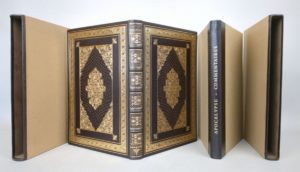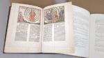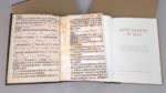 APOCALYPSE DE JEAN. Fac-similé du manuscrit Douce 180 conservé à la Bodleian Library d'Oxford, accompagné de la traduction en français et d'une étude de jean Grosjean, avec des commentaires de Yves Christe et Montague Rhodes James. Paris, club du livre (Philippe LEBEAUD), 1981. 2 volumes. 21 par 31 cm. Un volume de fac-similé en couleurs, sur un papier épais. Pleine reliure en plein veau brun avec un très riche décor sur les plats, dos 5 nerfs, dans son étui bordé. Et un volume en demi-veau strié brun de 130 pages, avec la traduction du texte et les études sur celui-ci de Jean Grosjean, dans son étui bordé. Exemplaire à l'état de neuf. Un fac-similé n'est qu'une copie réalisée au plus près de l'original, mais comme l'original est définitivement hors d'atteinte pour tous les collectionneurs… Magnifique réalisation…