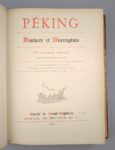FAVIER (Alphonse): PÉKING. Histoire et description. Paris, Desclée de Brouwer, 1900. Un volume. 22 par 29,5 cm. 416 pages, abondamment illustrées de 524 gravures dans le texte. Demi-chagrin rouge à coins d'époque, 5 nerfs, tête dorée, caissons ornés. Frottements sur les nerfs, deux petites tâches sur le 1er plat, épidermure au bas du dos (sans gravité). Rousseurs principalement concentrées sur les marges des 14 feuilles de reproductions photographiques. Bel exemplaire néanmoins. Un classique, avec de très nombreuses informations, et très bien illustré, ici dans sa réédition.