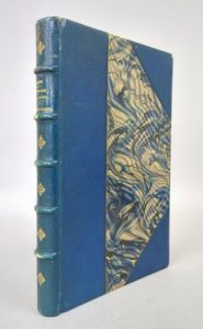 NEEL (Louis Balthazar): Voyage de Paris à Saint-Cloud par mer, et retour de Saint-Cloud à Paris par terre. Aquarelles de JEANNIOT, gravées par Gillot. Paris, Lahure, 1884. Un volume. 15 par 23 cm. (8)-XXXI-119 pages, et 10 illustrations en couleurs hors-texte et une carte dépliante (complet). Demi-chagrin bleu nuit d'époque, à coins, plat de la couverture illustrée en couleurs conservé. Très bon état intérieur, quelques frottements sur la reliure, coins très légèrement usés. Avec des bandeaux en couleurs. Exemplaire imprimé à petit nombre, celui-ci sur japon.