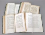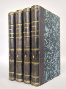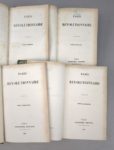 Collectif, dont Cavaignac, Raspail, Arago, etc: Paris révolutionnaire. Paris, Pagnerre, 1838, 4 volumes. 12,5 par 20,5 cm. LXXXIV-362; (4)-494; (4)-453-(2); (4)-475-(1) pages. Demi-basane noire de l'époque, dos lisse orné de filets doré et à froid. Quelques frottements, deux coiffes supérieures légèrement usées, petits trous de ver sur les dos (sans gravité). Fortes rousseurs sur 8 cahiers du tome 1, rousseurs éparses sur l'ensemble de l'ouvrage, cachet d'ancienne appartenance sur 1 faux-titre et 3 titres. 2ème édition (E.O. : 1833-1834). Célèbre ouvrage de propagande républicaine sous la Monarchie de Juillet. Tome premier : Avant-propos. La force révolutionnaire (Introduction) par Cavaignac. Le Palais-Royal par Briffault. Une émeute sous la régence par Aycard. Le théâtre considéré comme moyen révolutionnaire par Arago. Le mardi-gras de Diderot par Saint Germain Leduc. Une séance du Comité de surveillance de la Commune par Fontan. Juillet 1830. Une scène de grenier, une scène de la Salpêtrière. Une émeute à Sainte-Pélagie en 1831 par Raspail. Un drame dans la rue par Auger. Les étudiants sous la Restauration par Pance. Le Luxembourg en 1815 ou la dernière nuit du Maréchal Ney par Alhoy. Philosophie de l'histoire par Ottavi. Un homme du peuple et un grand seigneur par Bonnias. Tome deuxième : La presse révolutionnaire par Marrast. La morgue après les trois jours par Arago. Les Parises ou 52 ans avant J.C. par Martin. Monsieur Aveline ou les Révolutionnaires par St Germain. La nuit révolutionnaire par Lurine. La Charbonnerie par Trélat. Après la Fronde par Fortoul. Le Parlement de Paris par Pance. Une nuit d'étudiant sous la Restauration par Flottard. Notice sur Achille Roche par Trélat. Tome troisième : Les Maillotins par Ménétrier. Le Blessé de Juillet par Luchet. Peste contre peste ou la France au 16e siècle par Altaroche. Les funérailles révolutionnaires par Marrast. Télémaque révolutionnaire par Pyat. Massacres de la Saint-Barthelemy par Dufey. Les Bagaudes ou la Gaule au 3e siècle par Duchâtelet. Tome quatrième : Les Sergents de la Rochelle par St Germain Leduc. Paris pendant les fêtes de Noël en 1588 par Bordas. Les proscrits de la Restauration par Degeorge. La ville sainte par Veyrat. Lettre sur l'état de siège par Cormenin. Le Champ-de-mai par Brucker. 5 et 6 octobre 1789, épisodes révolutionnaires par Haureau. Une semaine de la Cour des Pairs en décembre 1830 par Briffault. Une émeute sous Mazarin ou les barricades de 1648 par Laponneraye. Les hôpitaux par Caffe. Paris révolutionné par Desnoyers. Paris Histoire. .