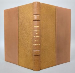 GERARD-GAILLY: le Gland et la Citrouille. Illustré de onze eaux-fortes par J. E. LABOUREUR. Paris, Hartmann, 1927. Un volume. 14 par 19,5 cm. 115 pages. Large demi-maroquin havane, plats en box cannelle, dos faux nerfs, trances dorées, couvertures et dos conservés. Parfait état de l'exemplaire. Un des 375 exemplaires numérotés sur Arches (155). Le style inimitable de LABOUREUR…