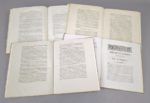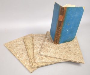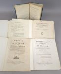 Réunion de 5 ouvrages 18ème et début 19ème sur le scorbut: 1. MILMAN (Francis): Recherches sur l'origine et le siège du scorbut et des fièvres putrides, ouvrage traduit de l'anglois, par M. Vigarous de Montagut. Paris, P. Fr. Didot Jeune ; Montpellier, Rigaud, 1786, in-8 de XXXII-192-(4) pp. ; demi-basane de l'époque, charnières très lég. fendues mais solides. Edition originale en français (E.O. en anglais : 1782). Wellcome IV-p. 139. 2. FACIEU (Henri): Dissertation sommaire sur le scorbut ; présentée et publiquement soutenue à la Faculté de médecine de Montpellier, le 27 juin 1820, pour obtenir le grade de docteur en médecine. Montpellier, Jean Martel Aîné, 1820, in-4 de 24 pages. Cartonnage bradel moderne. -Petite tache d'encre dans la marge sup. du f. de titre. Edition originale. B.I.U.M. : MP 1820, t. 74 n° 44. 3. RAYNAUD (Jean-Marie): Précis sur le scorbut. Dissertation présentée et soutenue à l'École de Médecine de Montpellier, le 25 floréal an X [15 mai 1802]. Montpellier, Coucourdan, An X [1802], in-4 de 27-(1) pages. Cartonnage bradel moderne. -Petites mouillures dans la marge sup. de l'ensemble des ff. Edition originale. 4. ROUXEL (M.): Essai sur le scorbut. Présenté et soutenu à l'École de Médecine de Montpellier, le 10 messidor an X [29 juin 1802]. Montpellier, Jean Martel Aîné, An X [1802], in-4 de 37-(1) pages. Cartonnage bradel moderne. Edition originale. 5. TEXTORIS (Joseph-Boniface): Dissertation sur le scorbut, présentée à l'École de Médecine de Montpellier le 28 Floréal an XI [18 mai 1803]. Montpellier, Tournel Père et Fils, s.d. [1803], in-4 de 21-(1) pages. Edition originale.