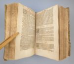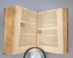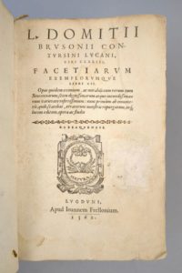 BRUSONI (Lucio Domizio): Facetiarum exemplorumque libri VII. Opus quidem eximium, ac mirabili cum rerum tum sententiarum scitu dignissimarum atque iucundissimarum varietate refertissimum.(…) Opera ac studio. Lugduni, Ioannem Frellonium, 1562. Un volume. 11 par 18 cm. (6)-499-(4) pages. Plein vélin d'époque souple, en état correct, lacets manquants. Quelques feuillets avec des traces de mouillures marginales claires, quelques feuillets légèrement brunis, sinon état correct. Trois appartenances anciennes effacées. Livre élégamment titré à l'encre sur le dos, et de très fines lettrines.