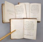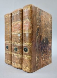 (Code Napoléon) [TAGLIONI (Onofrio)]: Codice civile di Napoleone il Grande col confronto delle leggi romane, ove si espongono i principi delle stesse leggi, si trattano le quistioni più importanti sull'interpretazione delle medesime, e si accennano le comuni teoriche dei giureconsulti ricevute nel foro ; coll'addizione di due indici delle materie, l'uno del Codice, l'altro del diritto romano. [...] Ad uso delle università e dei licei del regno d'Italia. Milano, Tipografia di Francesco Sonzogno, 1809-1811. 3 volumes. 9 par 14 cm. Pagination continue de (4)-XXXV-(1)-1835 pages + 4 ff. n.ch. (faux-titres et titres des tomes 2 et 3). Demi-basane fauve de l'époque, dos ornés. Plats du tome 1 tachés, coins émoussés. Taches d'encre sur 3 ff. (sans gravité), qq. rousseurs. Exemplaire très convenable. -²²²²² Edition originale. Guido Alfa, Le Code civil et l'Italie. Revue internationale de droit comparé, 2005, pp. 571 à 625. "Le Code civil, traduit en italien en 1806, entre en vigueur dans les régions qui composent le Royaume d'Italie d'origine napoléonienne. Par prescription de loi expresse (décret royal du 15 novembre 1818), la version italienne est introduite dans les universités et dans les lycées dans cette édition qui donne une comparaison avec le droit romain." (G. Alfa). Après la chute de Napoléon, ce Code civil restera en vigueur dans certaines régions italiennes jusqu'en 1837.