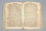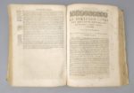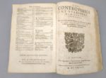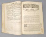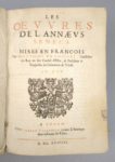 SÉNÈQUE (Lucius Annaeus Seneca): 1) Les oeuvres de l'Annaeus Seneca mises en françois par Matthieu de Chalvet. Rouen, Robert Vallentin, 1634. (12) ff. (dont 1 blanc)-555-(14) ff. (table des matières) ; (suivi de). -2) Les controverses et suasoires de M. Annaeus Seneca, rhéteur. Rouen, Robert Vallentin, 1634, 326 pp. (en fait, 276, la pagination sautant sans manque de 247 à 298). Soit 2 ouvrages en 1 volume. 17 par 24 cm. Plein vélin de l'époque. Petit trou de vers sans gravité sur le premier plat, lacets absents. Rousseurs, une vingtaine de ff. brunis, mouillures claires en angle, marginales sur la moitié des feuillets. 1) L'édition originale de la traduction est de 1604. F. Hennebert, Histoire des traductions françaises d'auteurs grecs et latins pendant les XVIe et XVIIe siècles, pp. 151-152. Cette traduction, quoique du début du XVIIe siècle, se rattache encore à la langue du siècle précédent : "La langue qu'il parle est encore celle d'Amyot. [...] Pour le juger impartialement, c'est aux écrivains dont il a suivi les traditions qu'il faut le comparer. La traduction des oeuvres des philosophes stoïciens au début du XVIIe siècle s'inscrit dans la continuation de leur appropriation par les chrétiens. 2) L'édition originale est de 1623. L'auteur, Sénèque le Rhéteur, père de Sénèque le philosophe, donne une compilation d'exercices de la rhétorique latine : les controverses et les suasoires. Les premiers étaient du genre juridique, il s'agissait de prouver l'innocence ou la culpabilité d'un accusé, les seconds étaient du genre délibératif : conseiller l'utile et déconseiller le nuisible. L'ouvrage constitue une source importante pour la connaissance de la rhétorique latine.