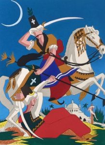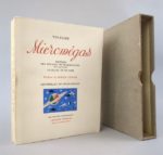 VOLTAIRE: Micromégas. Préface de Roger Vercel. Aquarelles de CHARLEMAGNE. L'Estampe Moderne, Paris, 1945. Un volume. 19 x 24 cm. Broché, sous couverture illustrée rempliée, avec étui. Tirage limité à 525 exemplaires. Celui-ci, un des 14 exemplaires sur Arches blanc (N°7) avec un original de l'artiste [reproduit à la page 25]. Petites usures à l'étui sinon bon exemplaire.