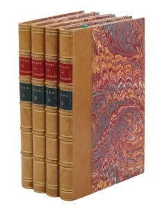 Paris, Paulin et Perrotin, 1834 ; 4 vol. in-8, demi-veau blond glacé, dos à nerfs ornés de filets dorés et à froid, pièces vertes et rouges, têtes peigne. Édition augmentée d’un grand nombre d’inédits, précédée d’un essai sur la vie et les écrits de l’auteur par Amand Carrel. Portrait gravé sur acier. Très bel exemplaire.