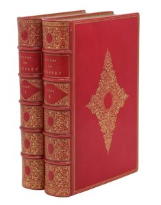 Paris, Renouard, 1811 ; 3 tomes en 2 vol. in-8, maroquin vermillon, filets dorés sur les plats, grand fleuron losangé au centre, dos à nerfs très ornés de motifs à entrelacs, dentelle intérieure, tranches dorées, étui moderne (Capé).Édition soignée, ornée d’un portrait de l’auteur et de 8 jolies figures hors texte gravées d’après Moreau le Jeune.