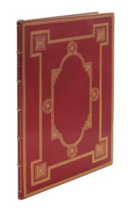 Réunions de deux suites très rarement complètes, d’un beau tirage. Chaque planche est réemmargée ; le recueil est luxueusement établi par Gruel dans un maroquin rouge de grande qualité. – Quatre ex-libris : O. A. V., André Barrier, Jean Barrier et Serge Barrier.