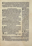Lyon, Mareschal et Chaussard, 1512 ; in-4 de [46] ff., vélin moderne à rabats, tranches rouges. Édition originale de l’ample commentaire d’Antonio de Nebrija (1444-1522), imprimé en caractères gothiques. La mise en page est particulièrement réussie avec ses lettrines simples et élégantes et la glose encadrant le texte. Page de titre gravée sur bois avec encadrement de feuillages et d’oiseaux.