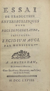[TAILLET Eustache ou Charles ROUSSEL] — Essai de traduction en vers burlesques d'une pièce de poésie latine intitulée Excidium Augi par Monsieur***.