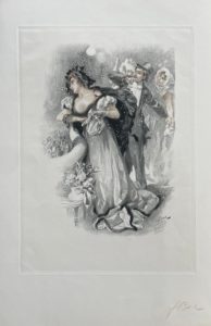 Paris, H. Simonis, 1894 ; grand in-4, demi-percaline rouge à coins de l’éditeur, titre doré en long, couverture illustrée en couleurs conservée. Bel album sur le Paris de la Belle-Époque contenant une préface d’Arsène Houssaye. Il est orné d’un frontispice à l’eau-forte et de vingt jolies figures hors texte en couleurs légendées.