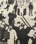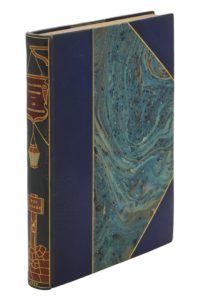 Paris, Floury pour les Bibliophiles indépendants, 1896 ; petit in-4 demi-maroquin bleu roi à coins, filet doré, dos lisse orné d’une composition mosaïquée représentant une rue pavée et une lanterne, tête dorée, couverture illustrée reliée d’un seul tenant (Champs).Ouvrage collectif réunissant, sous la houlette d’Octave Uzanne, une quinzaine de bons écrivains dont Tristan Bernard, Edmond Pilon, Paul Adam, Jules Renard, etc. Les textes sont illustrés de vignettes dans le texte par François Courboin et de 30 compositions à l’encre de Chine de Félix Vallotton, reproduites par le procédé Gillot et tirées sur Japon.
