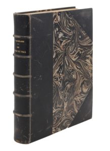 Paris, les Cent Bibliophiles, 1899 ; in-4, demi-maroquin noir à coins, dos à nerfs, tête dorée, couverture illustrée et dos (Affolter).Première édition illustrée des Fleurs du mal, et sans conteste l’une des meilleures. Elle est ornée de plus de 320 compositions d’Armand Rassenfosse, l’élève et le collaborateur de Félicien Rops : 170 eaux-fortes et aquatintes en couleurs, dont un frontispice et 6 hors texte, et de nombreux culs-de-lampe de différentes couleurs.
