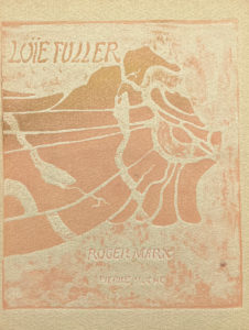 Évreux, Ch. Hérissey, 1904 ; petit in-4 en ff. de [2] ff. bl., 26 pp., [2] ff. bl., couverture rempliée illustrée en couleurs, étui à rabats de l’éditeur recouvert de papier japon avec titre gravé, restes d’attaches. Édition originale rare et précieuse. Elle marque un jalon dans l’histoire du livre illustré. L’album est imprimé avec le nouveau caractère Auriol, utilisé pour la première fois. Il est surtout illustré par Pierre Roche, sculpteur qui adapta sa technique à la gravure, moulant des compositions en relief, recouvertes d’aquarelles, sur lesquelles on appliquait le papier. Pour éviter la concurrence entre deux gravures recto-verso, les feuillets sont imprimés d’un seul côté puis collés deux à deux. Cette technique révolutionnaire, dite gypsographie, servit à Pierre Roche pour illustrer deux livres, dont celui-ci. Elle fut ensuite abandonnée car trop onéreuse à mettre en œuvre et ne permettant que de très petits tirages. L’effet se prête particulièrement bien à cet hommage à la danseuse Loïe Fuller, dont la spécialité était d’agiter des voiles autour de son corps dans des contorsions serpentines.