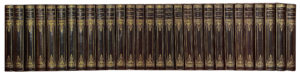 Paris, Ollendorff, 1899-1904 ; 29 vol. in-12, demi-chagrin aubergine, dos lisses ornés en long, têtes dorées, couvertures. Première édition collective, complète, ornée de 200 gravures sur bois d’après les meilleurs artistes : Bac, Fraipont, Géo Dupuis, Lobel-Riche, etc. Cette édition est différente de celle donnée en 1900 par Ollendorff et Albin Michel, en 30 volumes. – Quelques pâles rousseurs.
