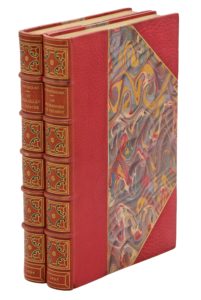 Chacun des deux volumes est l’un des rares exemplaires tirés sur Japon, avec deux états des gravures. Infimes traces d’humidité en haut des volumes, sinon très beaux exemplaires.