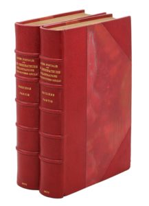 Paris, Morgand et Fatout, 1877 ; 2 vol. in-8, demi-maroquin vermillon à coins, dos à nerfs, têtes dorées, couvertures (Canape).Essai sur le goût des illustrations au XVIIIe siècle. Tirage à 570 exemplaires.