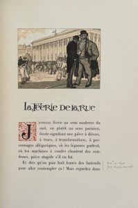 Paris, la Collection des Dix (Romagnol), 1900 ; grand in-8, demi-maroquin bleu nuit à coins, filet doré, dos à nerfs orné, tête dorée, couverture illustrée en couleurs (V. Champs).Visite poétique des quartiers parisiens en 1900, vus par Auguste Lepère : 63 bois gravés en couleurs ou en camaïeux, la plupart dans le texte.