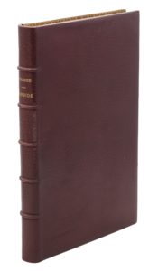 Paris, Boudet, 1893 ; grand in-8, maroquin janséniste aubergine, dentelle intérieure dorée, doublures et gardes de soie, tête dorée, couverture (Hans Asper).Édition illustrée par Adrien Moreau de gravures à l’eau-forte in et hors-texte.
