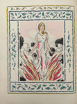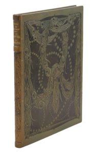 Paris, Kieffer, 1922 ; petit in-4 veau vert bronze, plats décorés de guirlandes de roses estampées à froid, dos à nerfs avec roses et feuillages, tête dorée, couverture illustrée (René Kieffer).Édition ornée d’illustrations art déco d’Auguste Henri Thomas : 20 figures de saintes à pleine page et plusieurs encadrements, fleurons et culs-de-lampes, le tout coloré au pochoir dans des tons vifs par Charpentier. L’édition est augmentée d’un poème par rapport à l’originale de 1898. – Tirage à 550 exemplaires numérotés, celui-ci sur vélin de cuve.