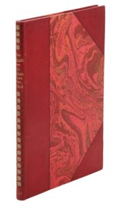 Paris, F. Ferroud, 1917 ; in-8, reliure de l’époque demi-maroquin rouge à coins, filets à froid, dos lisse entièrement orné de petits cercles dorés et à froid, tête dorée, couverture et dos (René Kieffer).Poème orné à toutes les pages de compositions en couleurs de Léon Lebègue : un grand frontispice replié en deux volets, des vignettes et de grands encadrements à plusieurs figures par page.