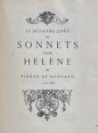 RONSARD Pierre de. Sonnets pour Hélène. Dijon, Hofer, 1921 ; 2 vol. grand in-8, demi-maroquin rouge pour l’un, brun pour l’autre (Blanchetière). – Tirage à 150 exemplaires, celui-ci sur papier d’Auvergne.