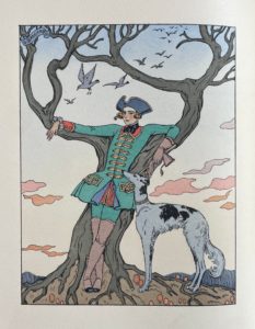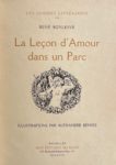 BOYLESVE René. La Leçon d’amour dans un parc. Bruxelles, éditions du Nord, 1927 ; in-8 demi-chagrin aubergine (Affolter). – Bois gravés en couleurs par Alexandre Benois.