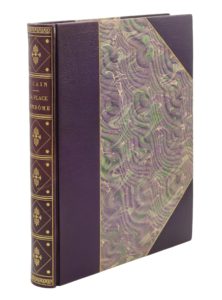 LEVAILLANT Maurice. Âmes et paysages d’Île-de-France. Paris, Les Bibliophiles du faubourg, 1932 ; in-4, demi-maroquin bleu roi à coins, dos orné en long (Canape et Corriez). – Orné de 29 gravures de Székely de Doba. Exemplaire imprimé pour André Barrier, numéro 22. Reliées à la fin quelques lettres relatives à la publication.