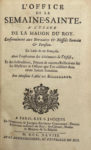 [L'Office de la Semaine sainte à l'usage de Rome et de Paris. Paris, Jacques Collombat, après 1726] ; in-8, maroquin rouge de l'époque, roulette dorée, armoiries au centre, dos orné de fleurs de lis, dentelle intérieure, tranches dorées. Exemplaire aux armes royales de Louis XV. Manquent le titre et la partie supérieure du feuillet iii-iv. Petit accroc au dos, menus frottements à la reliure.