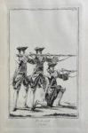 Titre avec médaillon d'après Bouchardon, un feuillet avec cul-de-lampe d'après A. de Saint-Aubin, une table gravée, 8 feuillets gravés recto-verso avec l'extrait de l'Ordonnance du roi du 6 mai 1755, et 63 MAGNIFIQUES PLANCHES REPRÉSENTANT DES SOLDATS DANS DIFFÉRENTES ATTITUDES dont un frontispice d'après Pierre. Colas I, 245.