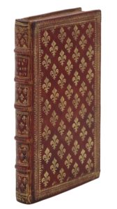 RELIURE DE PRÉSENT EN MAROQUIN ROUGE SEMÉE DE FLEURS DE LIS.