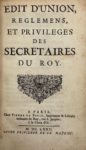[SECRÉTAIRES DU ROI] — ÉDIT D'UNION, reglemens, et privileges des Secrétaires du Roy.